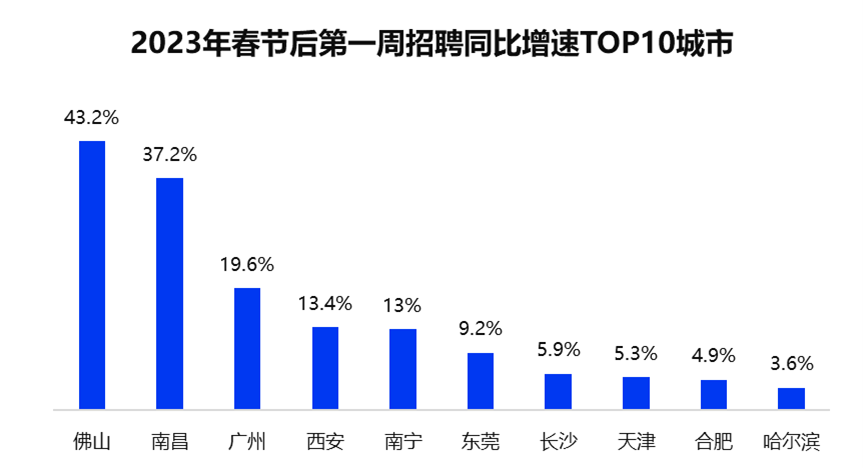 四、佛山、南昌豪气开工,节后招聘同比增速约4成 |