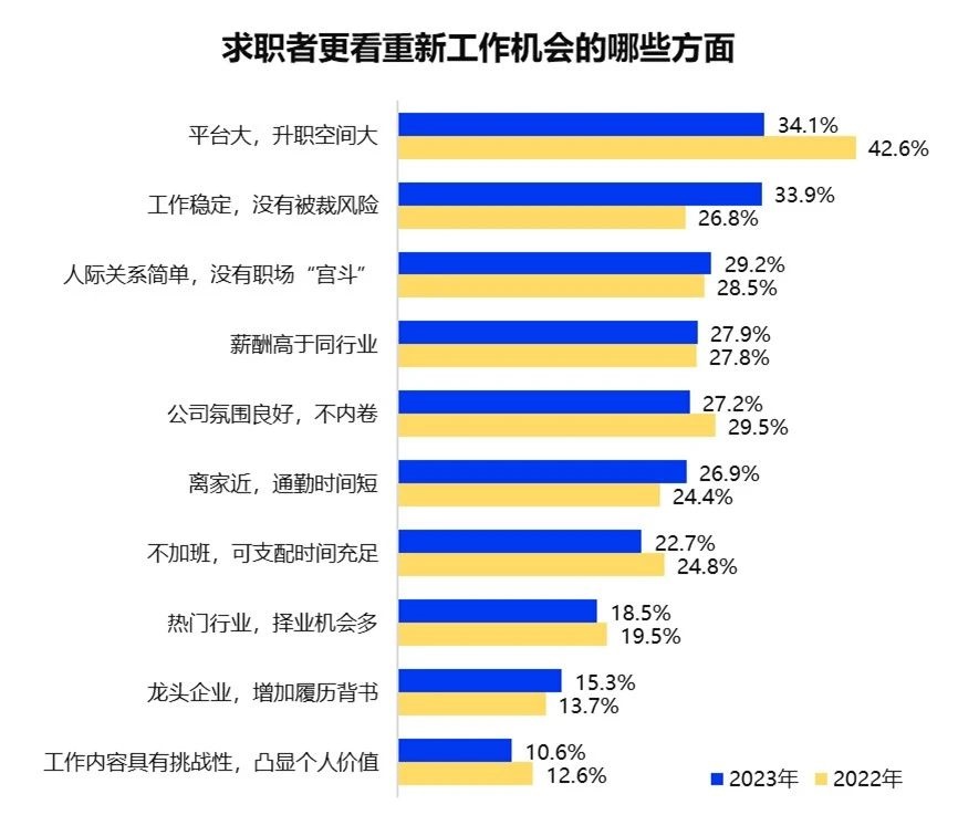· 2023年求职者更看重工作稳定性,近3成人希望无职场“宫斗”