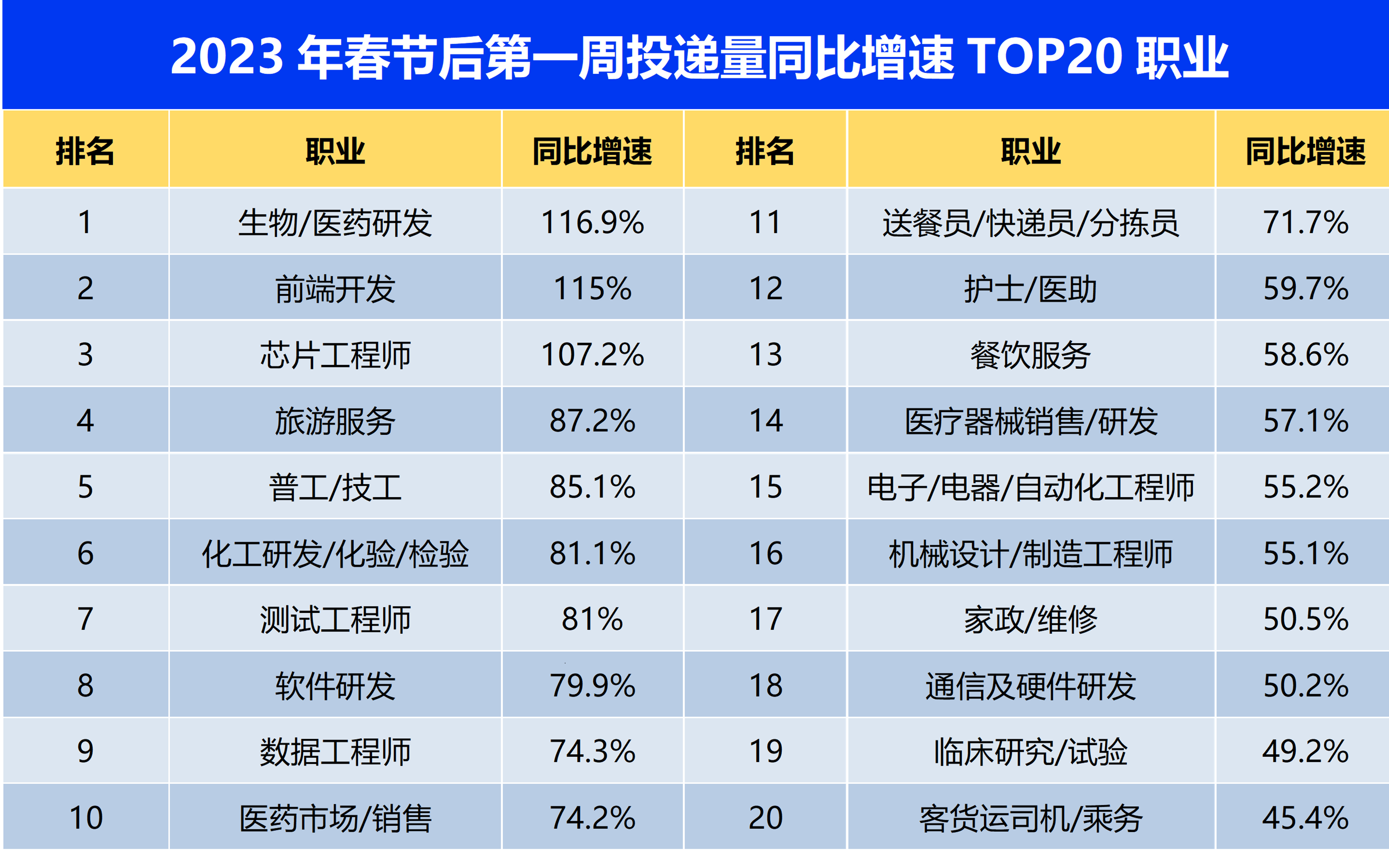· 技术岗投递升温,医药研发、前端开发等岗位投递量同比翻倍