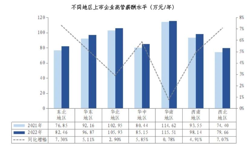 东北、西北地区高管薪酬增长显著