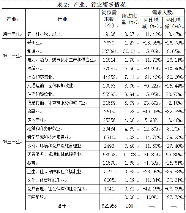 四川省三季度人力资源市场发布岗位62万个,哪些行业用人需求最多?