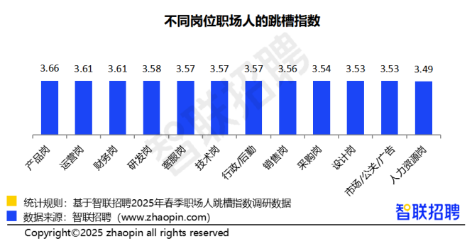 产品岗职场人跳槽指数最高,人力资源岗职场人稳定性更强