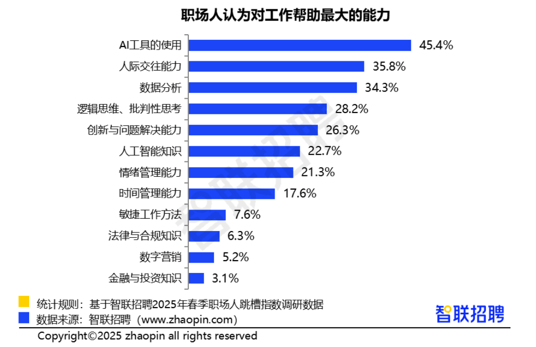 2025年职场人职场制胜关键:AI工具运用能力居首,人际交往能力次之