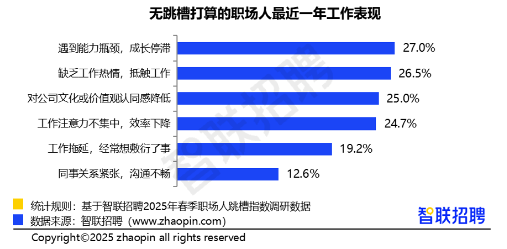 近3成无跳槽打算的职场人近一年遭遇能力瓶颈,工作热情有所下降