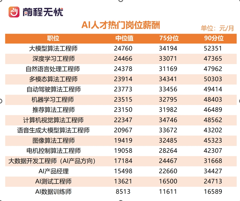 整体来看,当前的 AI岗位校招市场正呈现出“需求稳增、结构优化、薪酬分化”的三大特征。随着AI技术深入产业,企业对高素质、高潜力的AI应届生需求将持续增长,具备扎实算法基础和项目经验的人才将成为最大赢家。